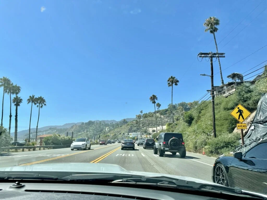 Het verkeer in LA is erg druk, je doet over een stukje van 15 km zo een uur. En het is echt heel onwerkelijk om zolang in een stad te rijden die zo groot is dat je nog sneller van Eindhoven naar Amsterdam rijdt dan dat je hier 50 km aflegt. Niet normaal. Het rijden zelf stelt niets voor, brede wegen, iedereen lijkt best relaxt in het verkeer, beter in ieder geval dan op de A1 of de ring van Amsterdam.