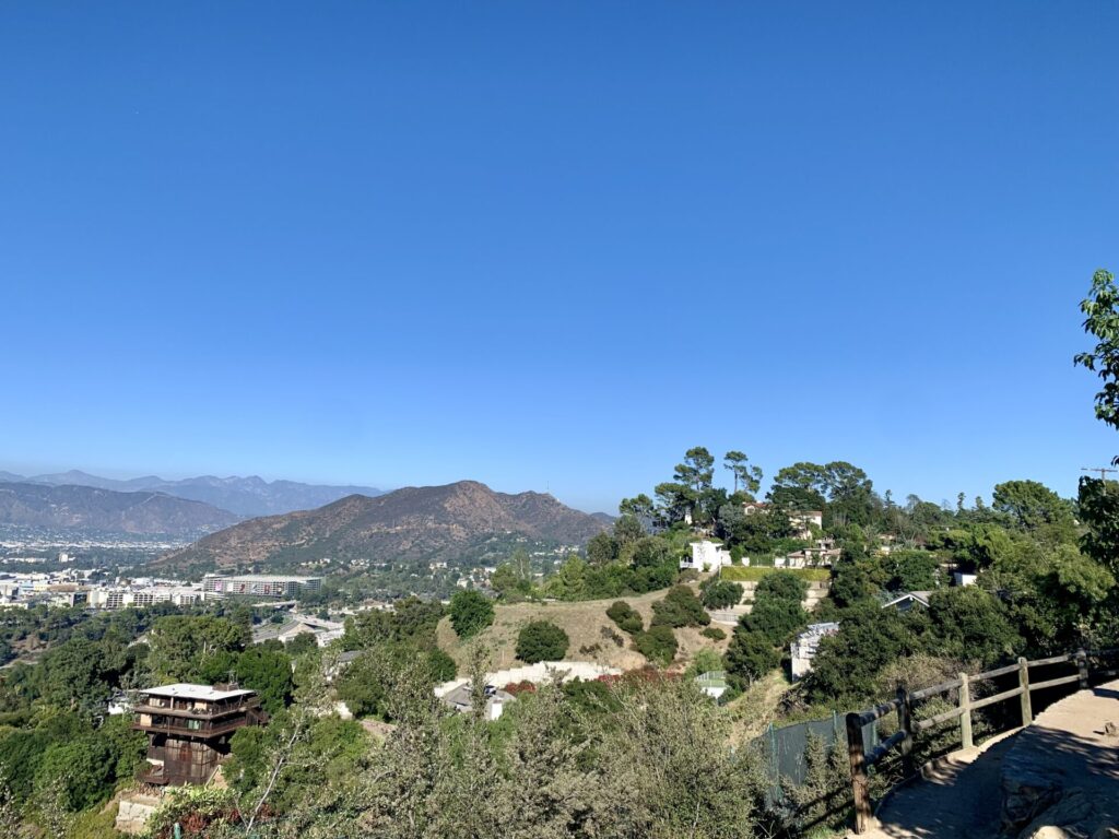 Na de bios zijn we over Mulholland Drive gereden, een slingerweg door de Hollywood Hills die kilometers lang alle kanten op gaat. Af en toe heb je een uitkijk punt waar we even konden stoppen en kijken wat er te zien is.